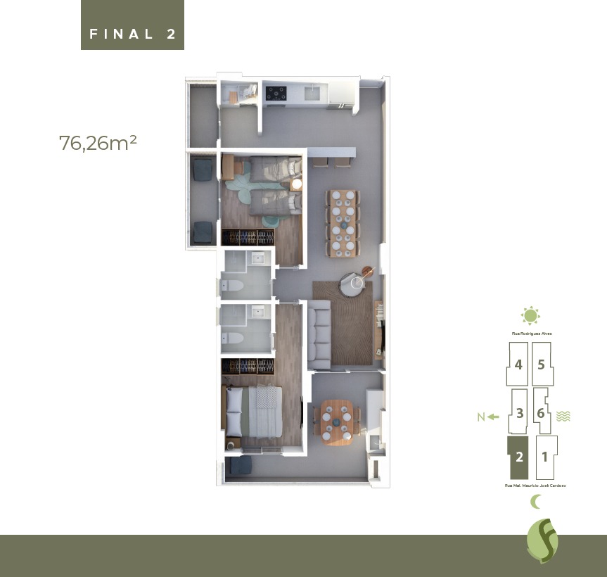 2 Dormitórios, sendo 2 com suítes