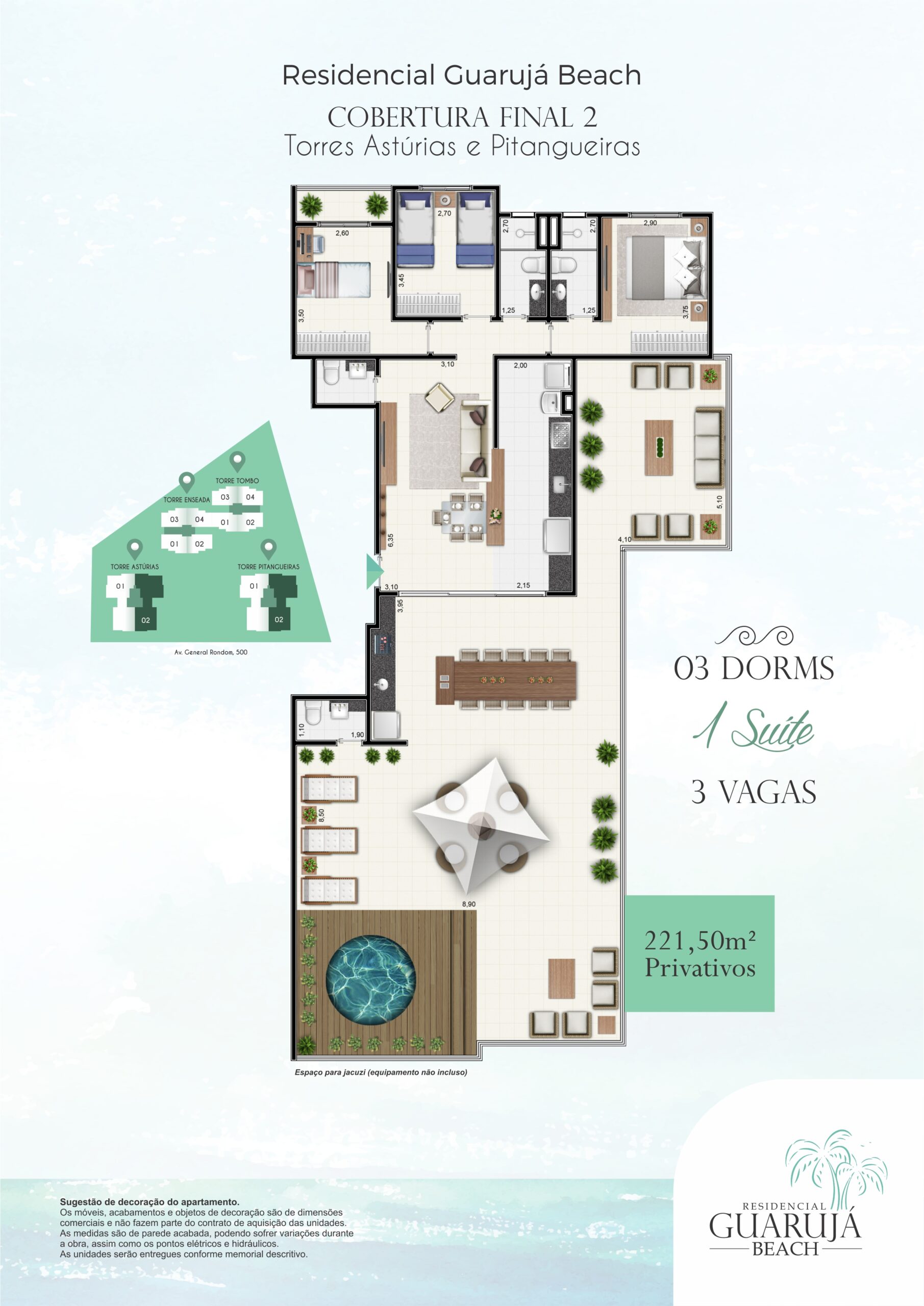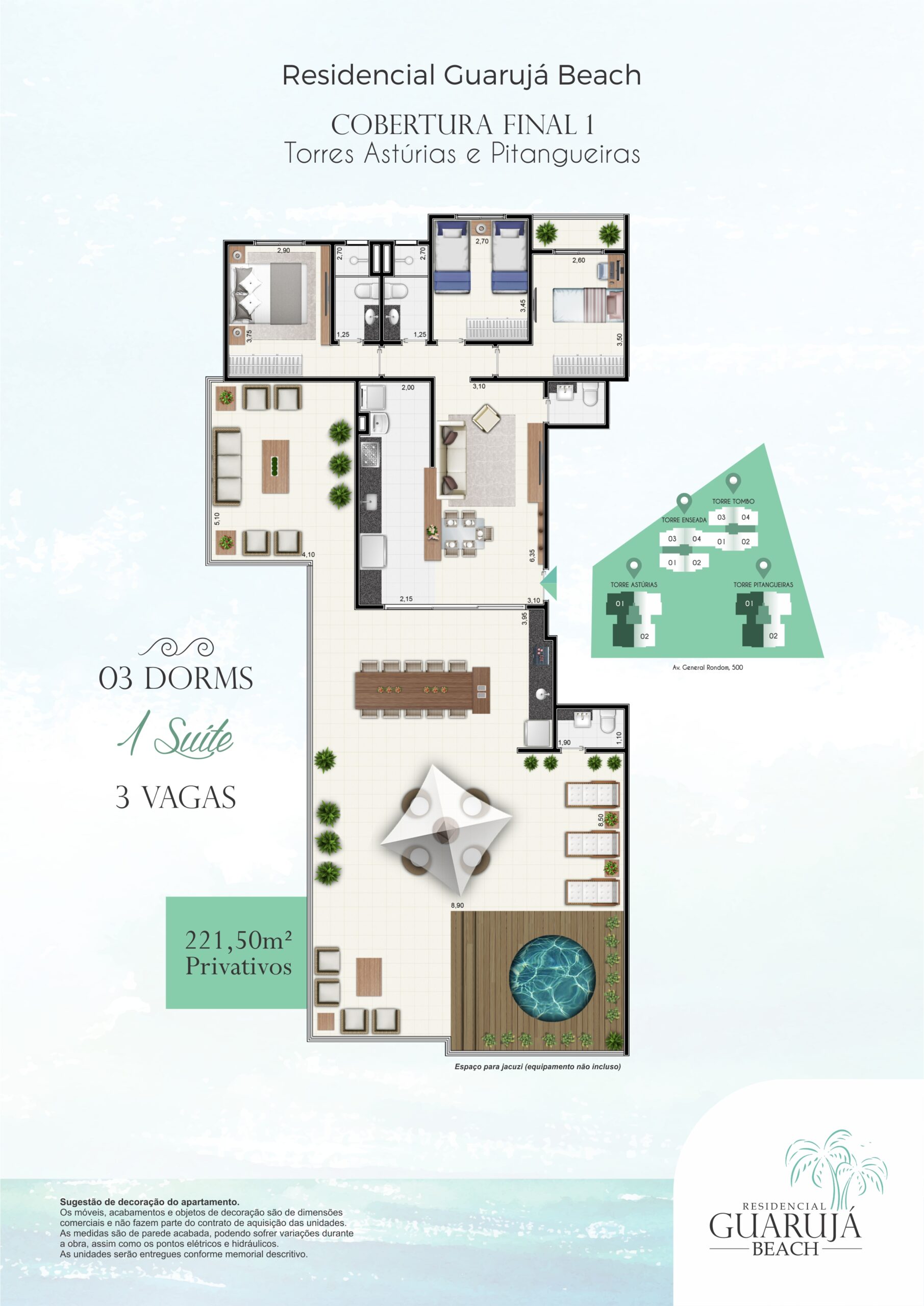 Guaruja Beach é mais do que um empreendimento à beira-mar, é um estilo de vida. Com um design contemporâneo que reflete a beleza natural da região, esse refúgio à beira-mar oferece uma variedade de amenidades para atender aos mais altos padrões de conforto e elegância. A localização estratégica proporciona fácil acesso às praias exuberantes e ao centro da cidade, tornando-o o local ideal para quem busca viver com tranquilidade sem abrir mão do requinte. Descubra a harmonia entre luxo e natureza em Guaruja Beach.