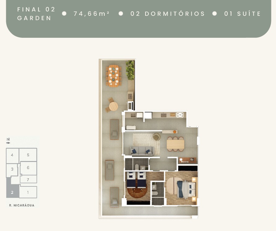2 Dormitórios, sendo 2 com suítes