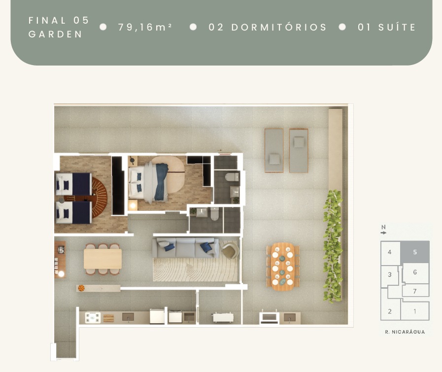 Sem exageros o embasamento do edifício conta com portaria e jardim bastante gentis promovendo qualidade de vida para o morador e a vizinhança.